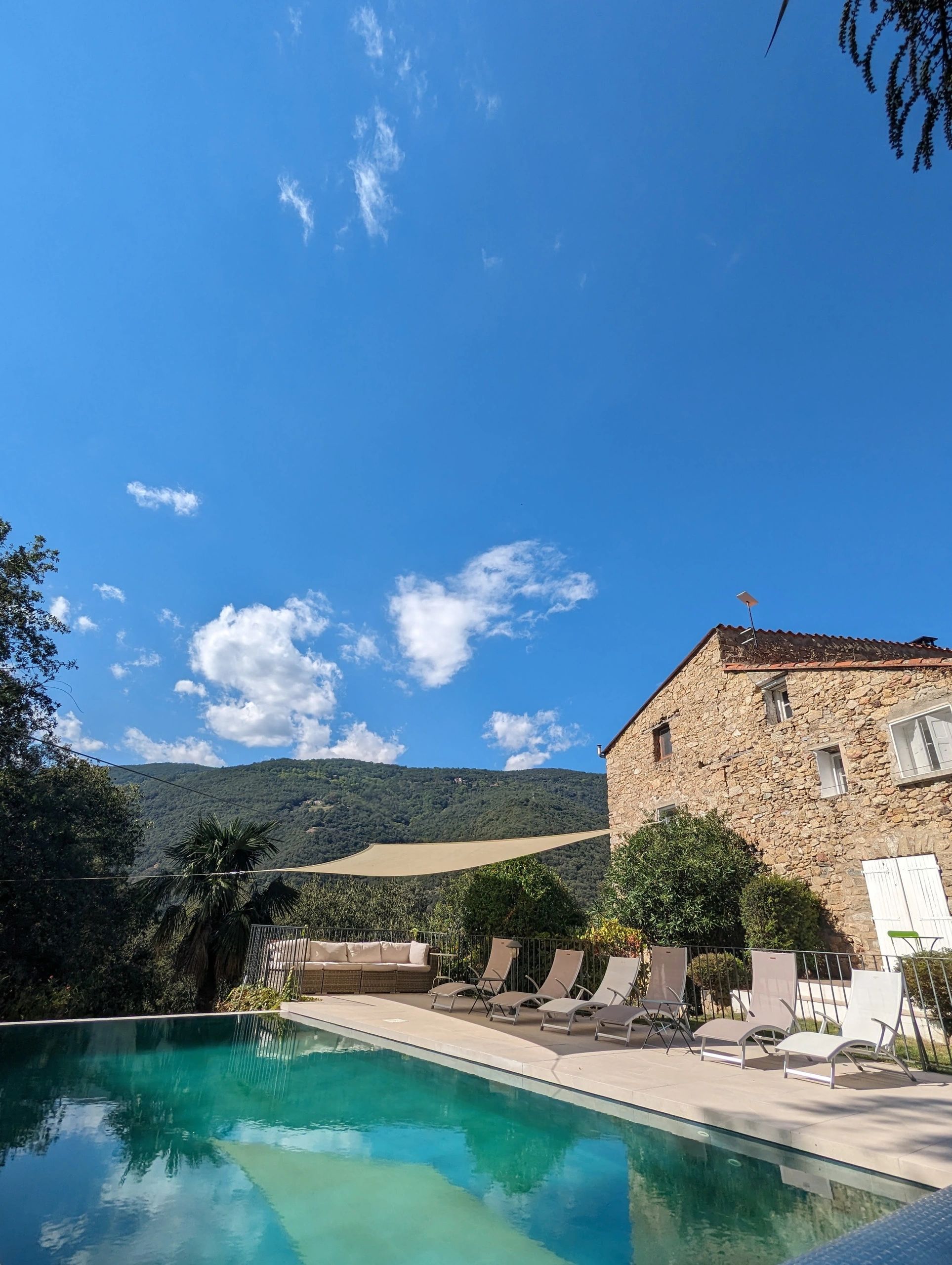 Nestled in the green oak and chestnut forest of Haut Vallespir in the Pyrenees Orientales region of southern France, Mas Clot d'en Guardia is a haven of peace and tranquility, well and truly off the beaten track. A hour's drive from Perpignan airport and you will find yourself a world away from the hustle and bustle of towns and cities; a place you can truly relax, unwind and surround yourself with nature. The garden boasts a multitude of fruit trees and flowering plants, as well as a spring-fed infinity swimming pool, wood-fired hot tub, and plenty of places to sit with a cool drink and rest your weary legs. Listen to bird song and deer barking in the forest as you wake for a hearty breakfast.